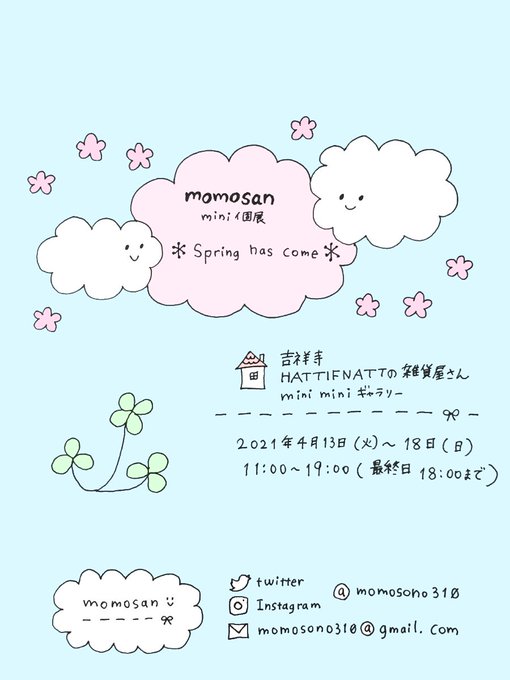 ◯4/13(火)〜18(日)11:00〜19:00 momosan mini個展 @吉祥寺HATTIFNATTの雑貨屋さん mini miniギャラリー