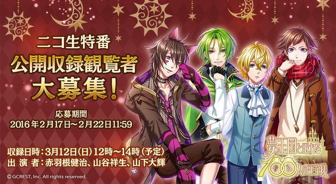 ニコ生でお馴染みのプリンス☆オオノさんにインタビュー! 『夢王国と眠れる100人の王子様』にて「プリンスアワード」開催中! - https://t.co/5fApqmluce #夢100