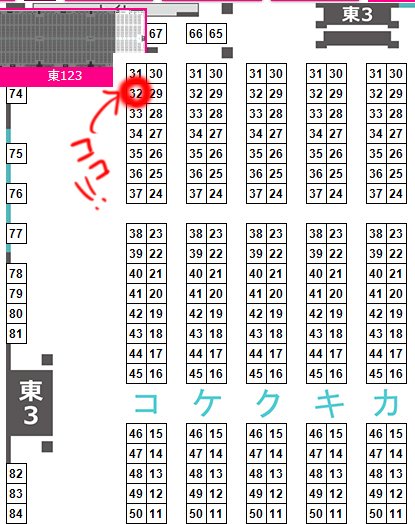 3日目スペースは東”コ”32a(ほぼ角)