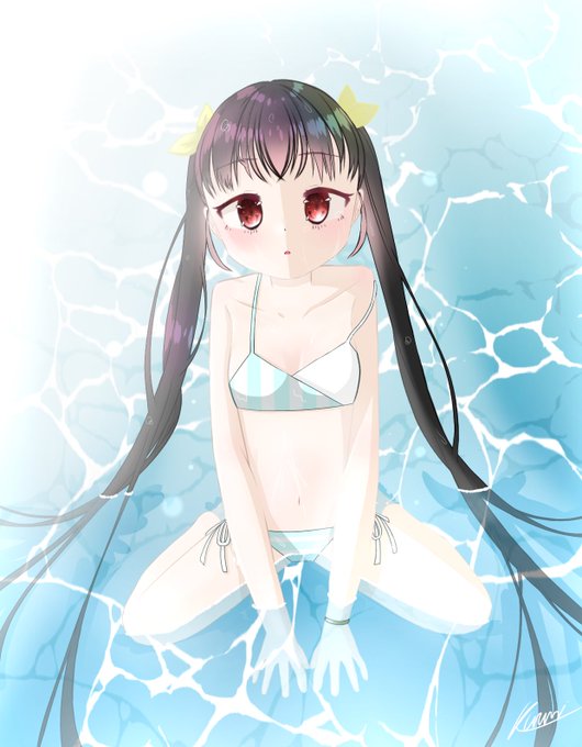 #中学生絵師さんと繋がりたい #中学生でこれは上手い方だと思ったらいいね押して #黒髪 #ツインテ #水着