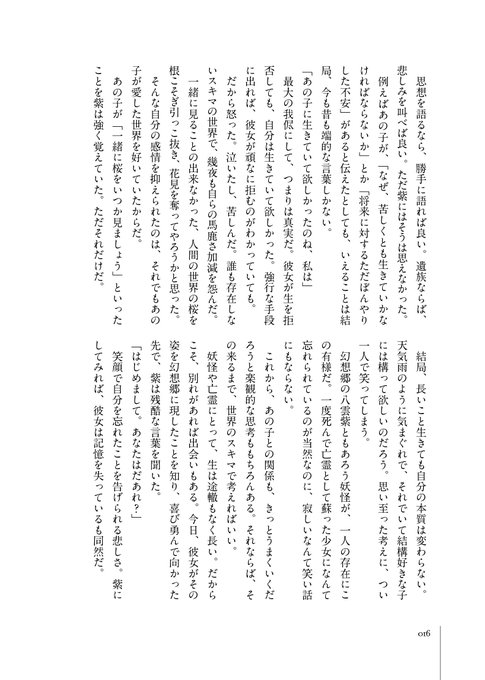 本編から抜粋という形式をとった川口士の掌編小説群のほか、フルカラーの挿絵を大量に収録した八坂さんのカラー画集ともいえます。