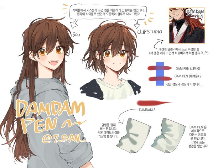 DAMDAM Pen😊사이툴에서 사용하던 커스텀 펜을 클립 스튜디오에서 제작해보셨다고 해요. 부드럽게 혼색 되는 것도 참 좋습니다. 기본 채색 브러쉬를 찾고 있었다면 이 소재는 어떠신가요?