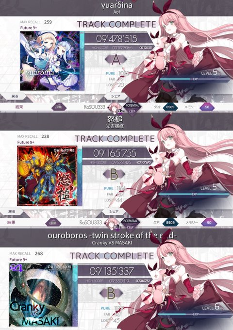 ウォーミングアップ終わり! 何故かこのタイミングでSheriruthのハイスコアを更新するという謎 紅ちゃんのレベル上げ頑張ってます。 #arcaea