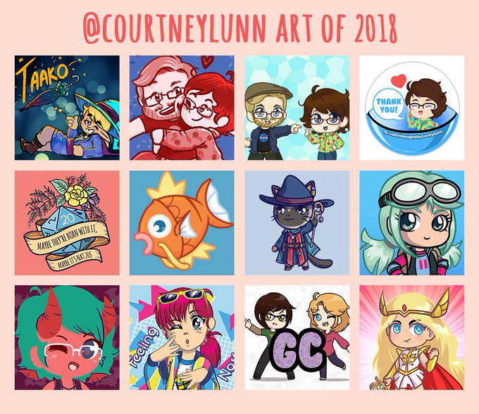 Here's my art summary of 2018! I didn't draw much in April so have a cute thank you label of me that I put on all my keychain packaging for cons.