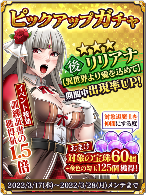 新退魔士「★3 リリアナ【異世界より愛を込めて】」獲得のチャンス!