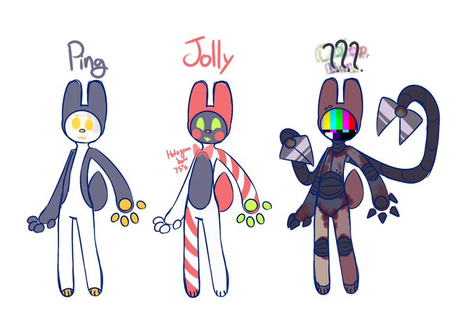 So lately I've had a fascination with drawing robot buns (Rabbots, Robuns, Bunbots?) In order: Phinean, S'morie, BUN-1E, Ping, Jolly, and idk yet (like maybe Colorbars or Scrapmetal??). Feel free to make your own if you want! It's not like a species or anything so ya