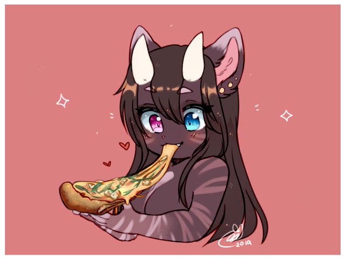 Ren eating my fav pizza (bbq chicken)