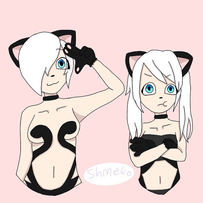 Since Instagram isnt working ima try out twitter lol. Hello everyone My name is Nini and what you see here are my sister's and my oc Neko and Angel. They are sisters of course lol. Neko is my mascot pretty much. (One with her hair covering her face)