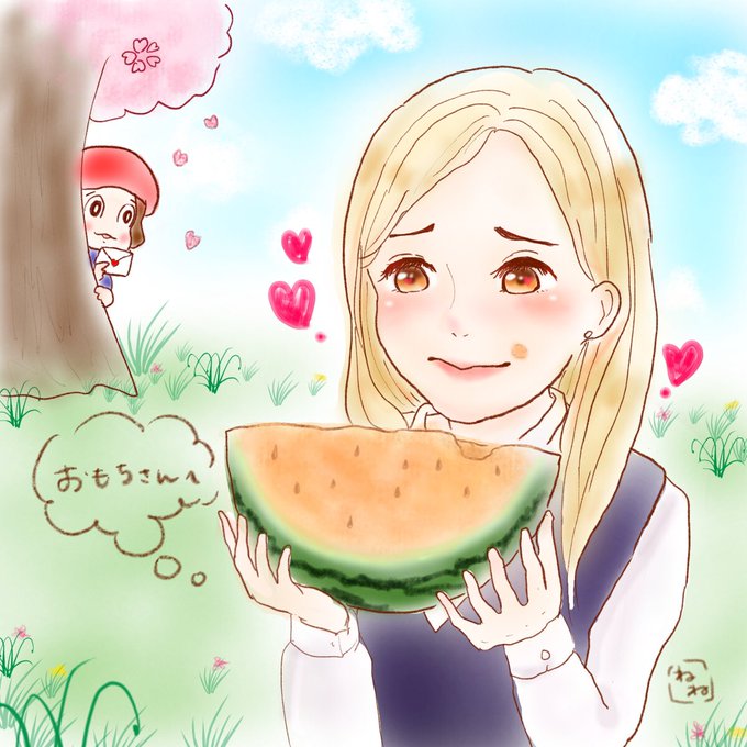 おもちさんが栽培したオレンジ色の🍉をマコちゃんに食べてもらいました😌(マコちゃんどこで食べてるの?って謎シチュエーションになりましたが…笑) https://t.co/7PKP2IwnQp