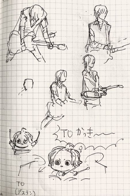 肉食べながらTOかっこよかったね…と言いファミレス入ってかっこよかったね…って言いながらここがカッコよかった図説始めた昨晩 絵描きが集まって絵を描くの学生時みたいで楽しい どっかでJR水平持ちしてクロスボリュームいじりしてたよね…?