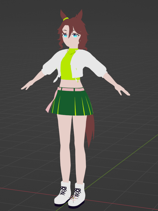 まいにちぱーまー9日目。ある程度できてきたのでアクセサリーも気づいたところから作っていってます。チャックってメッシュ?テクスチャ?あと、靴の形が微妙。