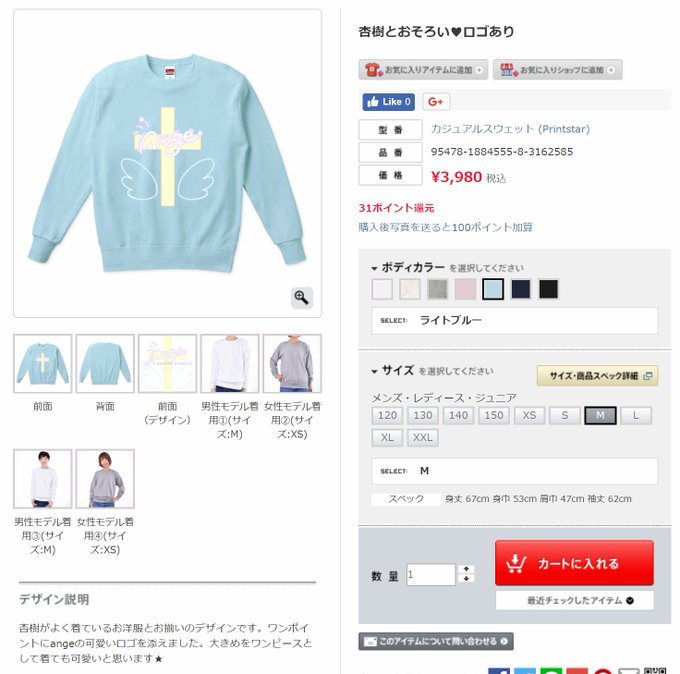 【宣伝】杏樹とお揃いのTシャツ・スウェットの販売を開始しました!レディース&メンズはもちろん、なんとキッズサイズまであります!XXXLまでありますので、杏樹みたいに大きめサイズでワンピースみたいに着ても可愛いかと✨是非杏樹とペアルックしてあげてください~!