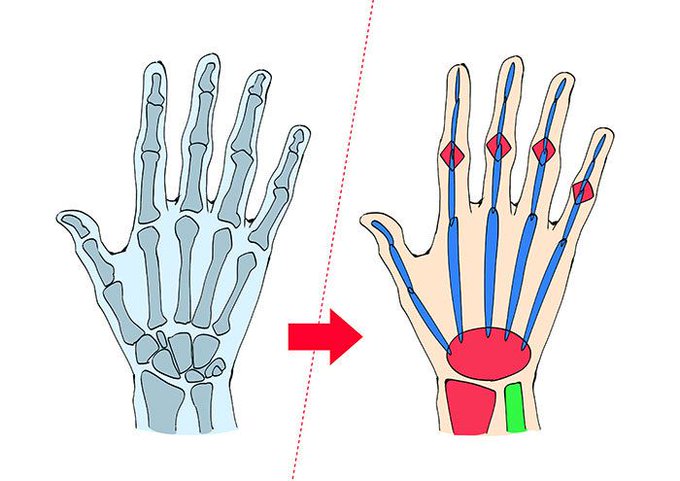・指の骨は手首を起点に生えている