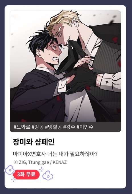 레진에서 '장미와 샴페인' 3화 무료 이벤트가 진행 중이네요!:))🔥🔥