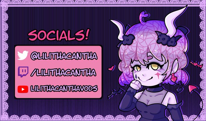 - And I'm currently trying to become a Vtuber @LilithAcantha (follows and pinned RTs appreciated)!