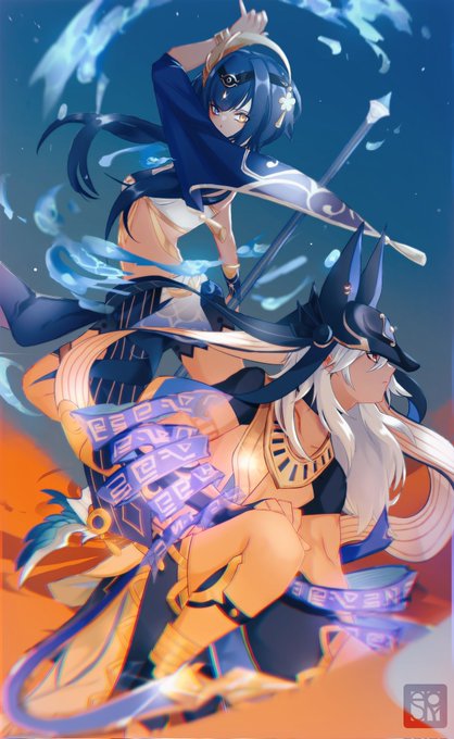 Oktai! He first met Sophie when he had to hunt a herbivore on her territory bc poor boy lost in the tropics and got hungry.(he lived in desert but have to leave his home for some reasons lol).