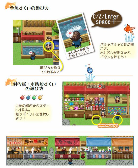 2~4.夏祭りで遊んだり、お化けだらけのお化け屋敷で女の子と脱出したりする「ほのぼのホラゲ」だよ😃