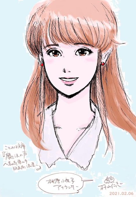 拙著「#魔法の声」、著者自ら描く登場人物シリーズ。柳原小夜子アナウンサー。この絵では、トレードマークのポニテではなく、髪を下ろしています。