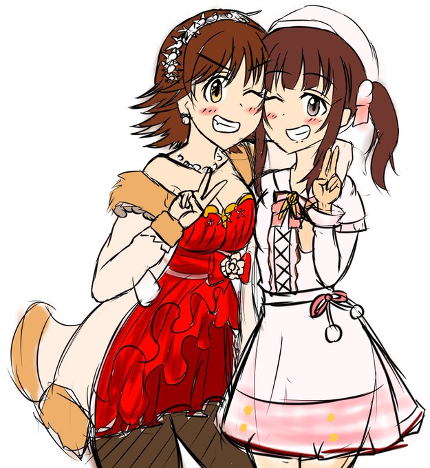 こんな感じですかね…色々と悪戦苦闘はしましたけど…ドレスはこんな感じぃ?あんまブワッとさせると智絵里に被っちゃうしねぇ…またこっから形を煮詰めたり柄を入れていこうかと思います…はーこりゃ大変だ