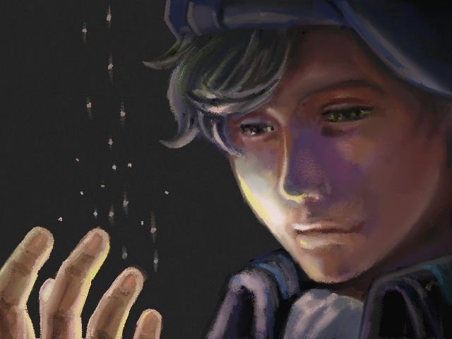 #ノイエ銀英伝 ヤン・ウェンリーのらくがき経過5枚目。おててにごま塩パラパラ。鼻をちょっと丸く、あちこち微修正入れてるけどあまり違いわかんない程度。