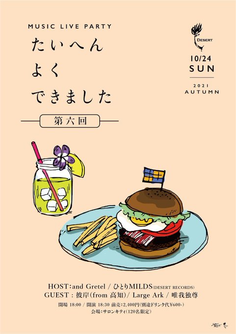 毎回大好評の「たいへんよくできました」、第六回はMILDSメンバーの都合がつかず弾き語りとなりますが全力で楽しませますのでよろしくお願いします!ゲストもクオリティ↑↑↑でゴキゲンなライブパーティ!予約お気軽にDM等でどうぞ!