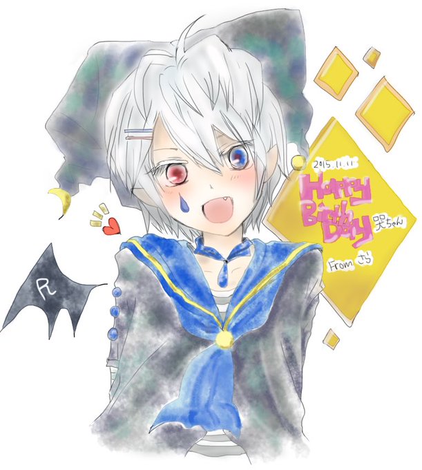 @SaharaNaki しらたまちゃん誕生日おめでとう!!!変な時間にごめん&勝手にお子さん描いてごめんね´д` ;アールくんです!(病んでないときの) 生まれてきてくれてありがとうー!ほんまにおめでとー!!大好き!