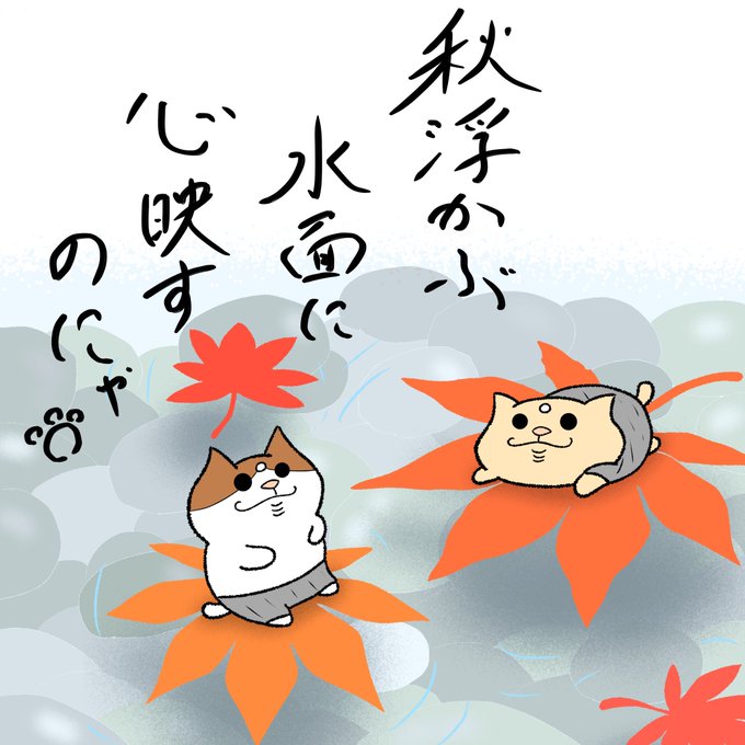 秋浮かぶ水面に心映すのにゃ。