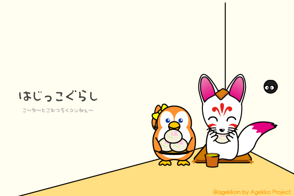 まんじゅうこわい、こわいコーン❤ #はじっこぐらし にお饅頭の差し入れをもって、遊びに来てくれたコン♪ありがとだコーン。