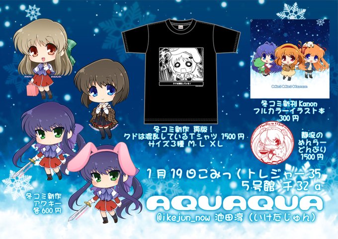 1月19日こみっくトレジャー 5号館チ32a AQUAQUA おしながきです。