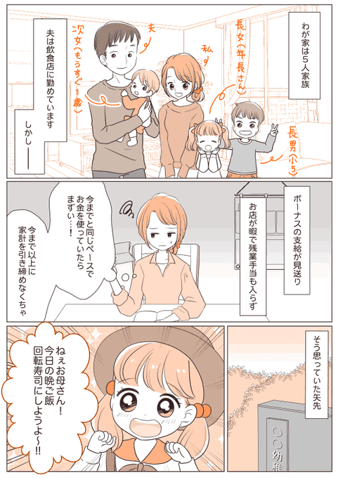 ▶【前編】飲食店勤めの夫の給料が激減……そんなとき子どもが「お寿司が食べたい」 と言い出して