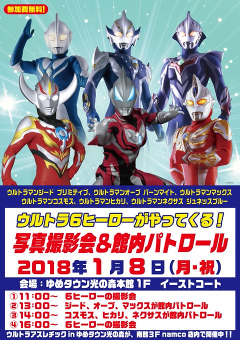 【#ウルトラアスレチック】先日オープンしたサテライト #ゆめタウン光の森。今週末は6兄弟が登場!続けて年明けのヒーロー登場予定も届きました!詳細は店舗にご確認ください。もちろん2月3月のイベントも準備中ですよー。
