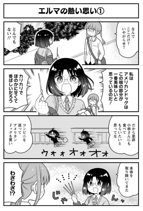小林さんちのメイドラゴン エルマのOL日記 【7巻発売記念・選り抜き】アメリカンドッグの端っこ / クール教信者 カザマアヤミ - ニコニコ静画 (マンガ) https://t.co/97Szb70TzG