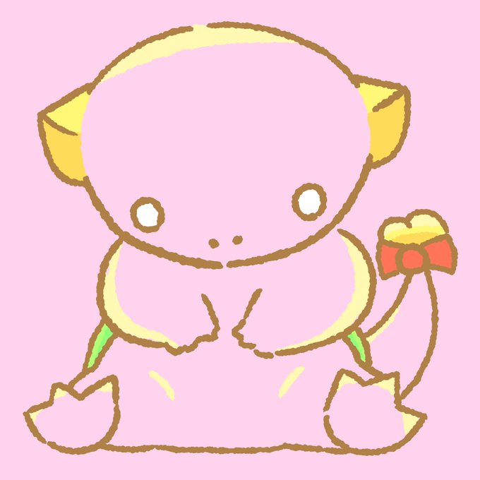 ピンク色の体に黄色のツノが2本生えてます!