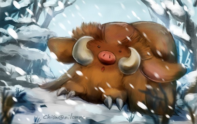 耳が垂れてて毛長なので、この時点でも割とマンモス的。のちにホントにマンモスっぽいポケモン、マンムーに進化できるように。