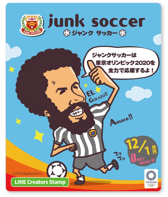 【告知】本日、ついにプロイラストレーターtachinによるレトロ&ポップでオシャレなフットボールLINEスタンプ『ジャンクサッカー』が販売スタート!ジャンクサッカーは東京オリンピック2020を応援します。