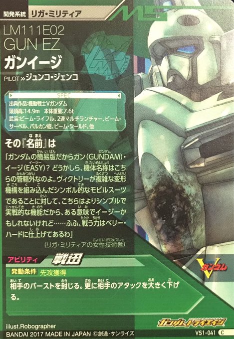 ガンイージ・試作MS。リガ・ミリティアがLM312V04ヴィクトリーガンダムと同時期に開発を進めていた機体。Vガンダムが、ややシンボル的な意味合いも込められた機体であるのに対し、この機体は実戦における機能を追究した汎用機となっている。#ガンダム [196] https://t.co/WAiX1iuW3I