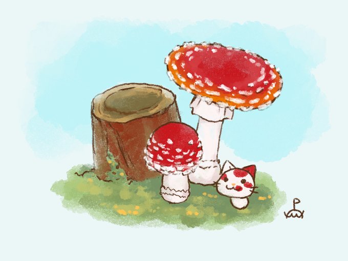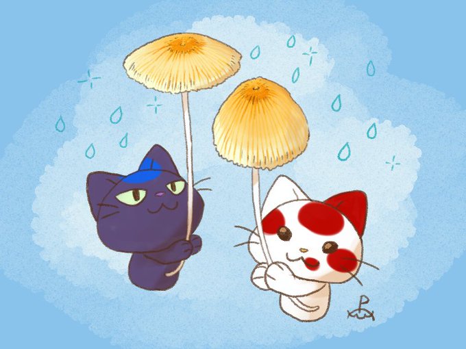 今日頑張った人も、そうでない人も、お疲れ様でした。おやすみなさい🍄 #キノコ #キネコ #ネコ