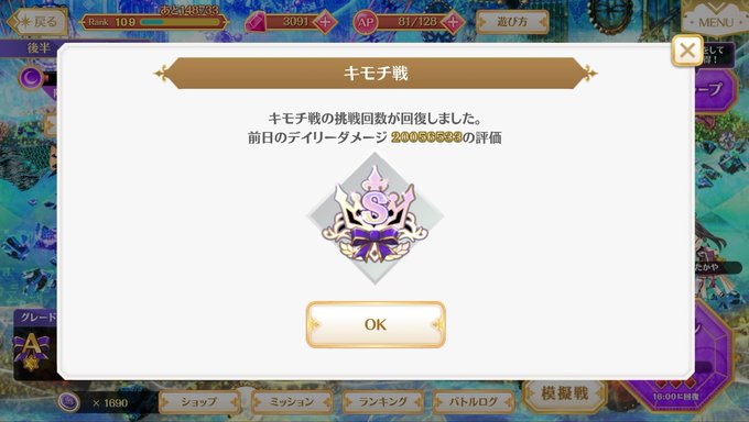 キモチ戦、最終日ですね。それなりに頑張りました。2いいねありがとうございます!