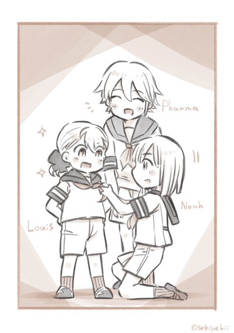 セーラーを着るファルマくん+ルイくん+ノアくん