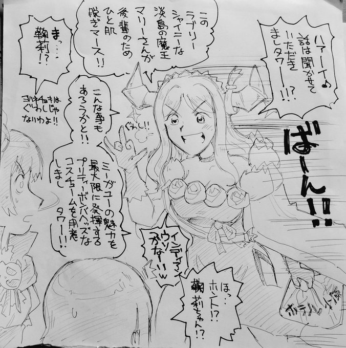 彼女をシャイニーに輝かせる飛行コスチュームを考えてボールペン一発描きしましタワー✨️