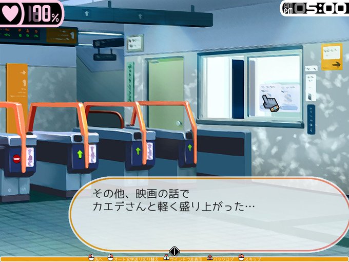 ・映画館のミニゲーム「ムードショット」を失敗した際のシーンスキップ可否で「OK」を選択してスキップすると時間のみ進まず履歴だけは残る