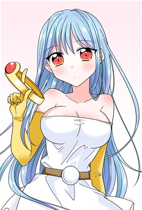 この絵では見えないですけど、髪は肩甲骨辺りでリボンで結んでいます。