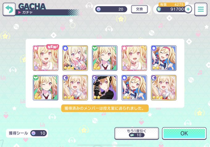 友人にガチャ禁すると言ったけどバースデーガチャまた回したし(どちらも出ませんでした)、イベガチャは1度目の10連ではイベカ出なかったのでお察し😌