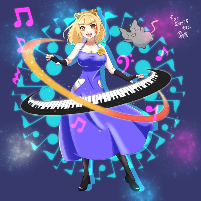 SHOWROOMで活動中のピアニストVtuber「塔野ムジカ」さん(@PianistMusica )の活動1周年のお祝いイラストです!