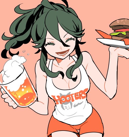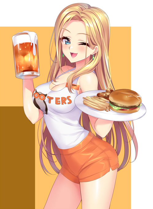 ポニテとかも映える衣装な気がするんですよね!>RT 画像は前によしじまさんが行ったフーターズに居たお姉さんの写真の模写