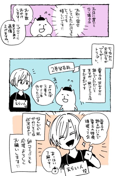 ブラザー・トラップの既刊の紙コミックス、欲しいけど見つからないという方は書店さんでお取り寄せしていただけると嬉しいです!🙏✨
