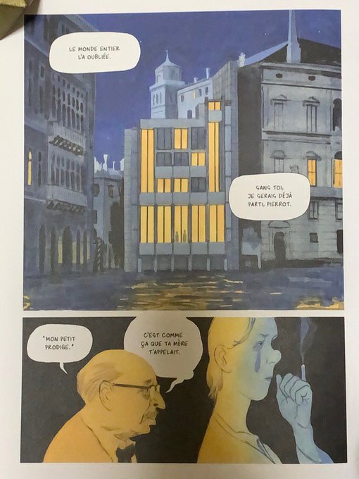 伊の #バンドデシネ 作家さん。ベネチアっぽい街と"大侵略"後の世界が舞台。フルカラー作品は読むのに疲れると言われますが、色のぼかしの技術が素晴らしくて大変心地よい読書感。 #はじめての海外マンガ としても良いのではと。