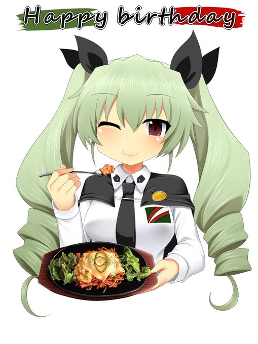 ドゥーチェ誕生日おめでとうございます~! イラストはアンチョビと、大洗マリンタワー2階の鉄板ナポリタン! #アンチョビ生誕祭2016 #アンチョビ生誕祭
