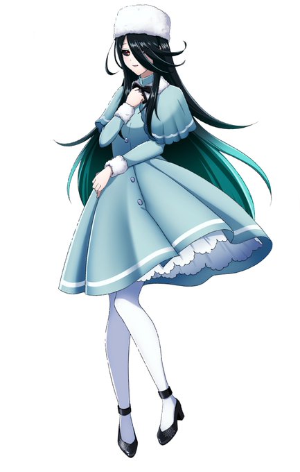 ロシアン帽とミントのコート、足元は雪の結晶と菌網をモチーフにしたデザインを入れてもらったよ!
