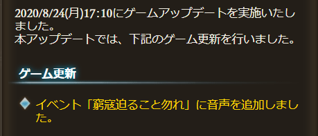 メンテ明けてアップデートきてますね。